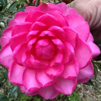Debbie Ellis (C. japonica) Registered in 2025. ACS Registration #3392. It was originated and registered by Jay & Debbie Ellis from Keystone, Florida, USA. A 8-year-old Sport of Non-Reticulata Hybrid 'My Diane'. It was first bloomed in 2018. Flower Formal double form with incurved petals, deep lavender pink. large size, 12.1 cm cm in diameter. Leaf Dark green, 3.8 cm long and 1.9 cm wide. Plant vigorous growth rate, upright, medium density growth. Bloom early to late.