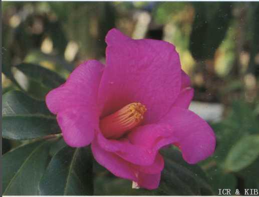 誠文堂新光社.1998.《日本ツバキ.サザンカ名鑑》.p.33. 【花】藤紫色の一重、ラッパ咲き、有香、中輪、1〜3月。 【葉】長楕円、中形。【樹】立性、強い。【来歴】尾川•武雄が ウラク64の実生から選抜。1996年に農水省登録申請。写• 文/尾川
