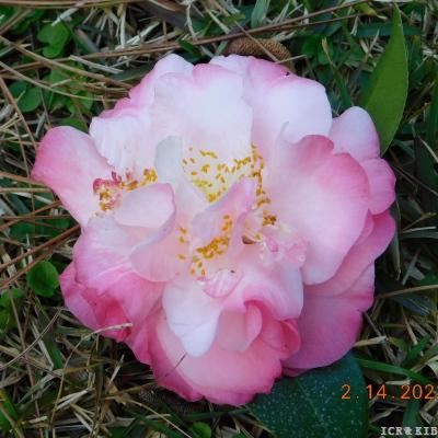 Isabel's Birthday (C. japonica). Registered in 2022. ACS Registration #3303. It was originated and registered by Pat B. Johnson from Cairo, Georgia, USA. A 25 year old chance seedling of C. japonica 'Snow Lady’. It was first bloomed in 2002. Flower semidouble to anemone to loose peony form, medium size, 9.5 cm in diameter, 7.0 cm in depth, light pink shading to hot pink on edges with yellow anthers and white filaments. Leaf medium green, 7.0 cm long, and 3.2 cm wide. Plant upright, open growth, average growth rate. Bloom mid-season to late.